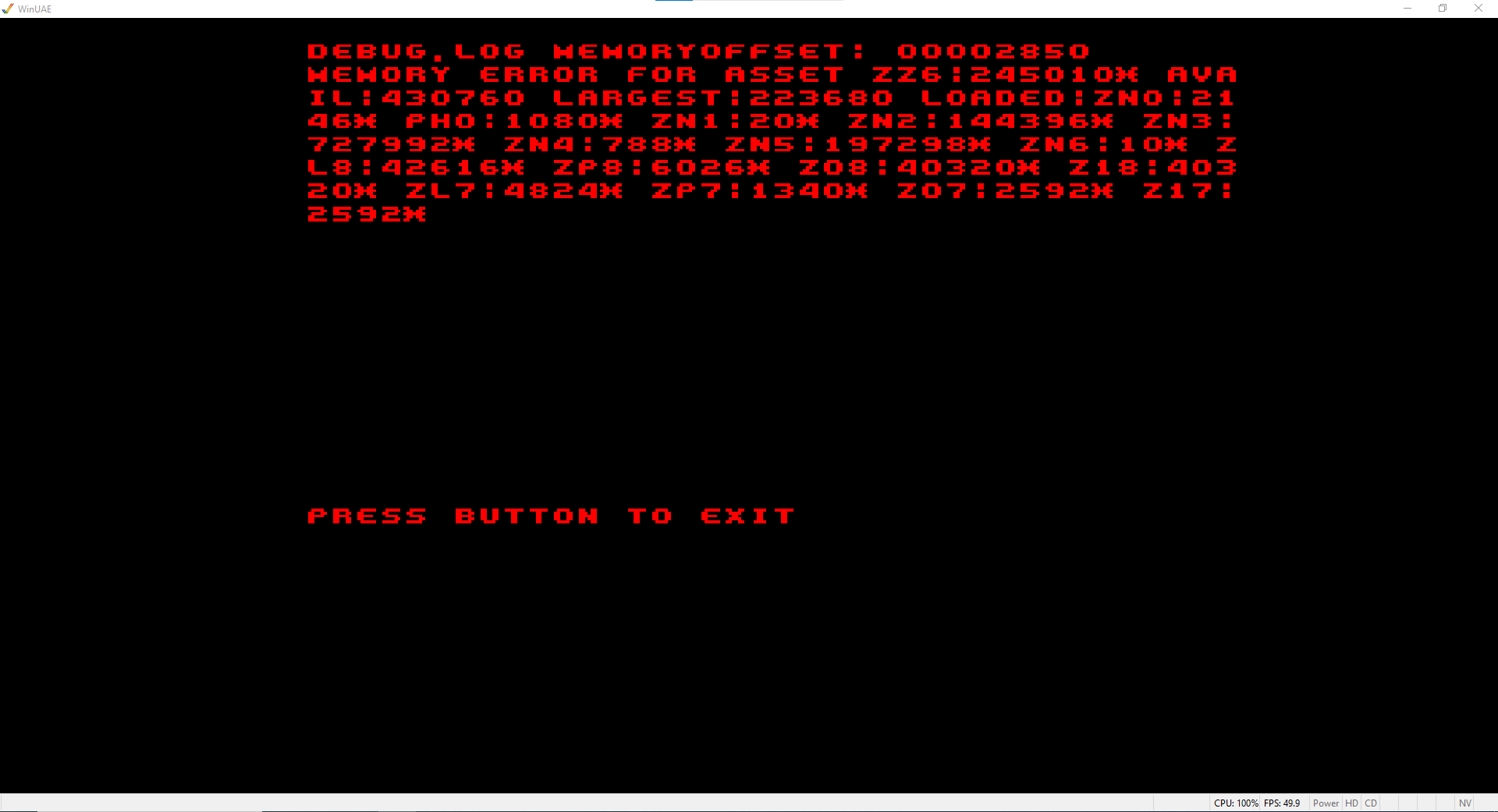 I just gave the new CD32 release a try, I got a game over during the Medusa fight and the game randomly soft locked in a weird way 😂 Also, the game crashed and showed me this error at the start of level 6